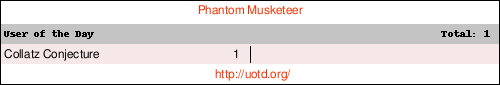 | Collatz Conjecture Mon 22 Mar 2010 12:00:00 AM CET |