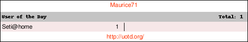 Name: Maurice71 Country: Netherlands Team: SETI@Netherlands |
