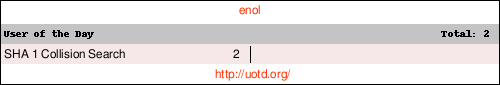 | SHA 1 Collision Search Wed 17 Oct 2007 01:00:00 AM CEST |