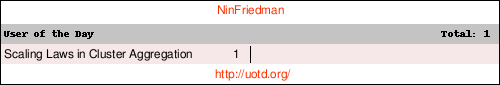 | Scaling Laws in Cluster Aggregation Sun 27 Jul 2014 06:06:08 PM CEST |