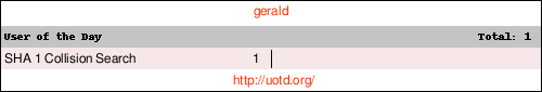 | SHA 1 Collision Search Tue 19 Aug 2008 01:00:00 AM CEST |