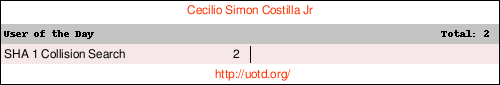 | SHA 1 Collision Search Wed 17 Dec 2008 12:00:00 AM CET |