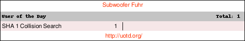 | SHA 1 Collision Search Mon 29 Sep 2008 01:00:00 AM CEST |