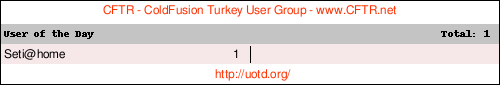 Name: CFTR - ColdFusion Turkey User Group - www.CFTR.net Country: Turkey Team: CFTR - ColdFusion Turkey User Group |