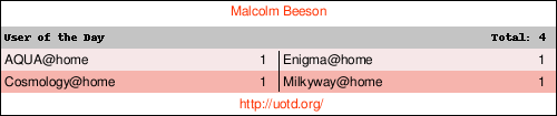 Name: Malcolm Beeson Country: France Team: Turan@BOINC |