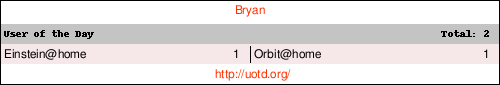 | Orbit@home Sun 26 Sep 2010 01:00:51 AM CEST |