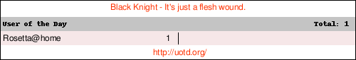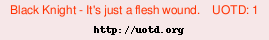 Name: Black Knight - It's just a flesh wound. Country: None Team: The Knights Who Say Ni! |