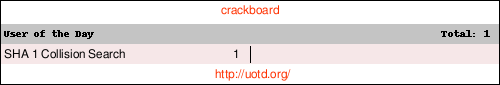 | SHA 1 Collision Search Tue 25 Mar 2008 12:00:00 AM CET |