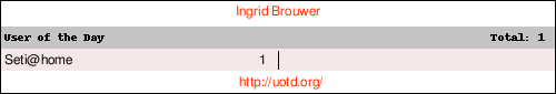 Name: Ingrid Brouwer Country: Netherlands Team: SETI@Netherlands |