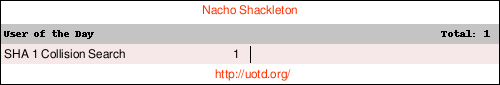 | SHA 1 Collision Search Mon 16 Feb 2009 12:00:00 AM CET |