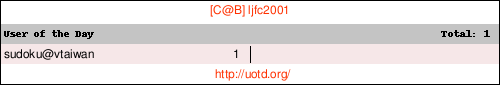| sudoku@vtaiwan Fri 25 Feb 2011 01:05:25 PM CET |