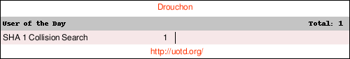 | SHA 1 Collision Search Fri 30 Jan 2009 12:00:00 AM CET |