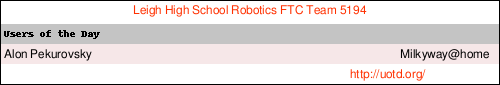 Name: Alon Pekurovsky Country: United States Team: Leigh High School Robotics FTC Team 5194 |